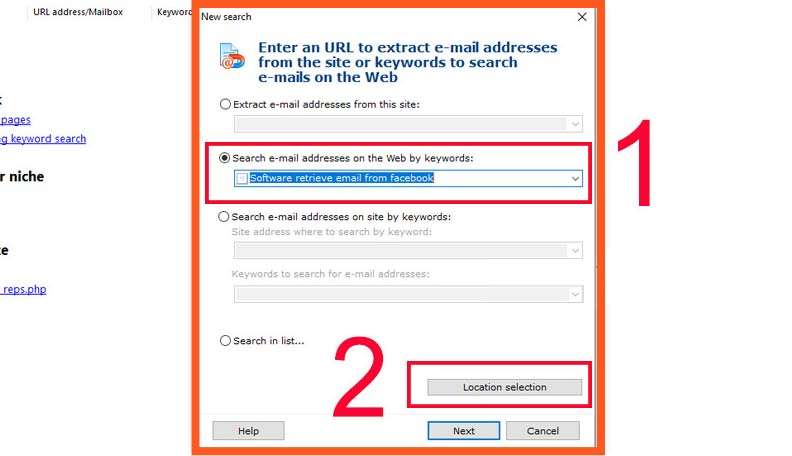 Step 2: Next, your computer will display a new window > Choose “Software retrieve email from Facebook“. Proceed to the “Location Selection” section.