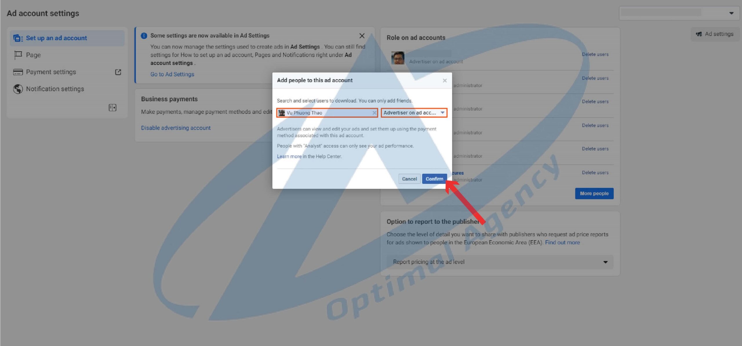 You want to share your Facebook advertising account with someone else, but you’re not sure how to do it. While this task may seem straightforward, not everyone knows how to accomplish it. Understanding this challenge, Optimal Agency will guide you through the detailed steps to share your Facebook advertising account.