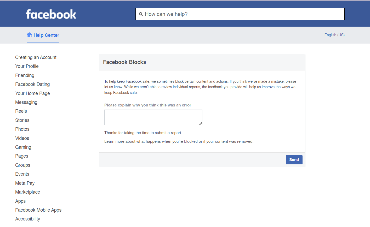 If your account hasn’t violated Facebook’s community standards and has been unexpectedly locked, it might be due to an error by Facebook staff. You can file a complaint with the Facebook team by following these steps:
